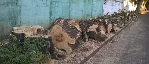 "Olha só como ficaram as árvores de um trecho da rua Edmundo Mercer, entre as avenidas Manoel Mendes de Camargo e Goioerê, no centro de Campo Mourão. Tudo "na chón". Só faltou a plaquinha: a motossera esteve aqui. Será que precisava tudo isso?"