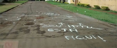 “Rua São Josafat, no conjunto Capricórnio. Os buracos foram sinalizados, com direito ao aviso “seu IPTU está aqui”.” Mykymias