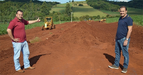 O prefeito de Quinta do Sol, João Claudio Romero, e o vice-prefeito Leandro Arruda visitaram as obras de elevação da estrada rural que dá acesso às fazendas Caetê e Modelo (Linhares).