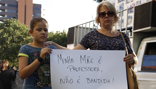 A passeata dos professores na tarde desta quinta-feira foi feita sem a presença da Polícia Militar.