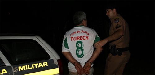Agora olha só a camisa que ele estava usando: “Time do Sonho” do ex-prefeito (de Luiziana e de Campo Mourão) Nelson Tureck. Viu só, com o fim do time, só bebendo mesmo...