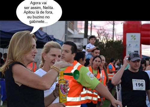O clic é deste sábado, quando aconteceu a primeira etapa do ano da “Maratona noturna – Saia de casa correndo”. Mais de 350 pessoas participaram. A vereadora Nelita Piacentini esteve por lá, assim como a prefeita Regina Dubay, com direito a apertar a buzina da largada e tudo. Ah, com uma buzina dessas dá pra encarar o apitaço dos servidores em greve, não dá?...