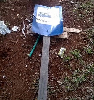 “Placa de ponto de ônibus apareceu jogada no canteiro central da av. José Custódio de Oliveira, entre as ruas Francisco Albuquerque e Brasil”.
