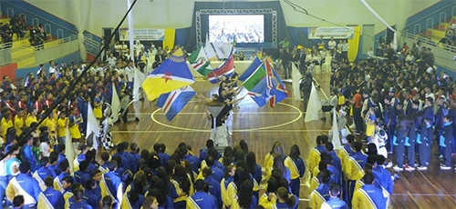 Quem disse que as regionais dos 62º Jogos Escolares do Paraná foram adiadas pela greve dos professores. Em Terra Boa não foi, não. A abertura, sexta-feira, lotou o ginásio de esportes Arnaldo Gonçalves Zampieri. Terra Boa faz parte do núcleo de Educação de Cianorte. Já as regionais de Juranda (núcleo de Goioerê) e de Roncador (núcleo de Campo Mourão) foram, sim, adiadas devido à greve.