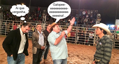 O clic é do fim de semana, em Araruna, onde aconteceu o 5º Araruna Rodeio Fest. O prefeito Fabiano Antoniassi esteve por lá, com direito a discurso e tudo. Ou será que estava cantando? Seja o que for, parece que o vereador Davi Fávaro não curtiu muito...