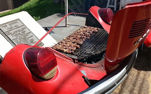 Teve Encontro de Carros Antigos, domingo, em Terra Boa. Uma caravana de Campo Mourão foi pra lá com suas relíquias. Na hora da fome não faltou uma churrasqueira bem original, feita com a traseira de um Fusca. Fusca Fafá, diga-se de passagem. No mais, cá pra nós: vá fazer uma dessas com uma Ferrari pra gente ver, vá!...