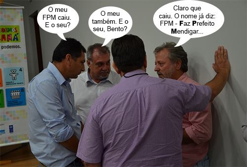 O clic é da semana passada, quando foi seminário debateu em Ubiratã os "Objetivos do Milênio". Os prefeitos Nei Calori (Mamborê), Baco Duarte (Ubiratã) e Bento Batista (Juranda) aproveitaram para colocar a conversa em dia. E, cá pra nós: prefeito fala outra coisa além da redução do Fundo de Participação dos Municípios?...