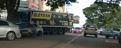 "Pode isso? Na rua São José, quase em frente à Fiorella, em plena 14h30. Detalhe: subiu na calçada também, trancando a rua e o passeio público".