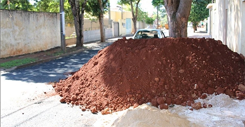 "Essa é a rua Ilha de Marajó, no conjunto Ilha Bela. É aquela rua que recebeu no fim de semana o recapa da prefeitura. Mal o pessoal da Codusa deixou o local e "apareceu" um monte de terra, ocupando toda a calçada e metade da pista. Pode isso?"