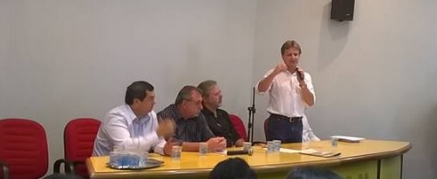 Marco Bassetto, da Engenharia Gallarati, durante fala com os os prefeitos na Comcam, nesta sexta-feira.