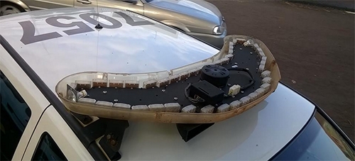 “Olha só como está o giroflex dessa viatura (Gol) da Polícia Militar de Campo Mourão”.