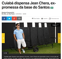 Olha quem está, de novo, na página inicial do UOL: Jean Chera. O ex-menino fenômeno da Adap voltou a ser destaque por mais um fracasso. Agora, aos 20 anos, ele foi dispensado do Cuiabá. Desde que deixou a Adap, aos 11 anos, Chera já passou por Santos, Genoa (Itália), Flamengo, Atlético/PR, Cruzeiro, Oeste, Universitatae Craiova (Romênia), Pinheiros/SC, Paniliakos (Grécia) e Cuiabá/MT. E nem tem mais Adap pra ele voltar...