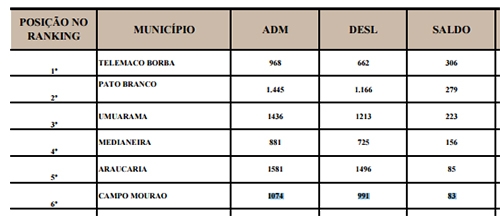 Campo Mourão foi a sexta cidade do Paraná que mais gerou novos empregos em abril.