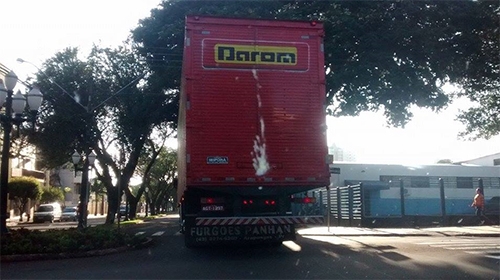 “Caminhão-baú passa pela av. Manoel Mendes de Camargo, esquina com a rua Mato Grosso. A foto é de sexta-feira pela manhã”.