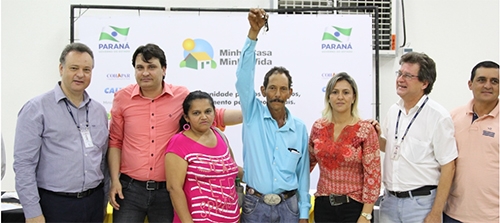 Altamira do Paraná – Foram entregues nesta sexta-feira as chaves das 62 casas construídas através do programa “Minha casa, minha vida rural”. O investimento foi de R$ 1,8 milhão. A prefeita Elza Aguiar e representantes da Cohapar participaram.