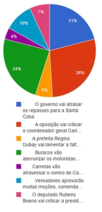 “O governo vai atrasar repasses para a Santa Casa” completou o pódio, com 21%.