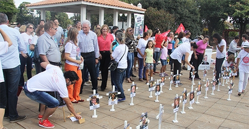 Montaram o “cemiterinho” e levaram faixas e cartazes contra o governo.