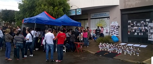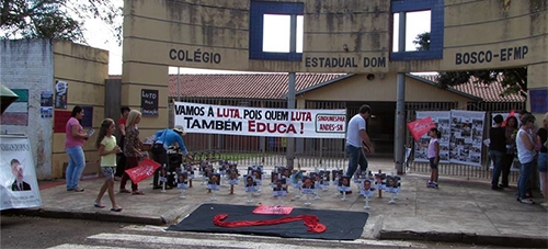 Professores estaduais em greve seguem o calendário de concentrações em frente a escolas de Campo Mourão.