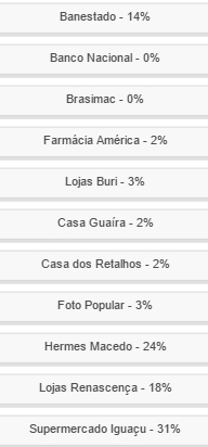 Boca Santa iniciou uma série de enquetes sobre o que gera saudade dos mourãoenses. A primeira quer saber de quais lojas, empresas e bancos o morador de Campo Mourão mais sente saudade. Até esta segunda-feira, o Supermercado Iguaçu estava na frente, com 31% dos votos. Depois apareciam Hermes Macedo (24%) e Renascença (18%). Vá lá e vote você também. Tá ali à esquerda, no alto da página.