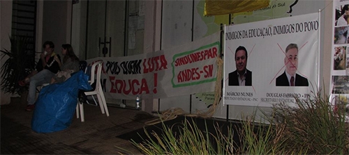 Professores estaduais em greve passaram a noite em frente ao Núcleo Regional de Educação de Campo Mourão. Eles ocuparam a frente do órgão na manhã de segunda-feira e se revezaram no local, numa ação que já dura mais de 24 horas. O núcleo não teve expediente. Um dos objetivos é evitar que as faltas dos professores em greve sejam repassadas para a Secretaria de Estado da Educação. Ah, pensaa que é fácil, é?...