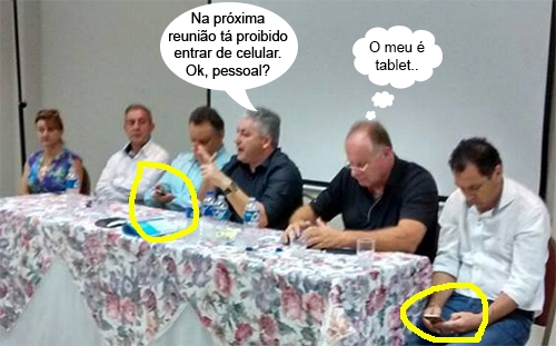 O clic é do fim de semana, quando o secretário de Estado Douglas Fabrício (Esporte e Turismo) se reuniu em Campo Mourão com lideranças regionais. Na mesa estão Ângela Kraus (prefeita de Farol), Renato Toaldo (ex-prefeito de Araruna), Fábio D"Alécio (superintendente da Cohapar e ex-prefeito de Ubiratã), Douglas, Cezar Bronzel (presidente do PTB) e Nei Calori (prefeito de Mamborê). E viva a tecnologia!...
