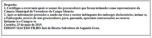 O juiz substituto de 2º grau, Edson Macedo Filho, mandou intimar Nespolo para que, se quiser, apresente contrarrações ao recurso.
