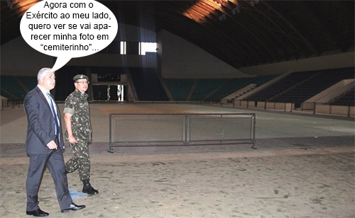Olha aí o secretário Douglas Fabricio (Esporte e Turismo) no Ginásio do Tarumã, em Curitiba, Foi conferir quais obras devem ser realizadas para readequação. Estava acompanhado do coronel Sérgio Luiz Tratz, do Colégio Militar de Curitiba. Segundo Douglas, a reativação do Tarumã, interditado há dois pelo Corpo de Bombeiros, é prioridade em sua gestão. A ideia é fazer uma parceria entre o governo e o Colégio Militar de Curitiba. Só por isso é que o Exército está ali, viu?...