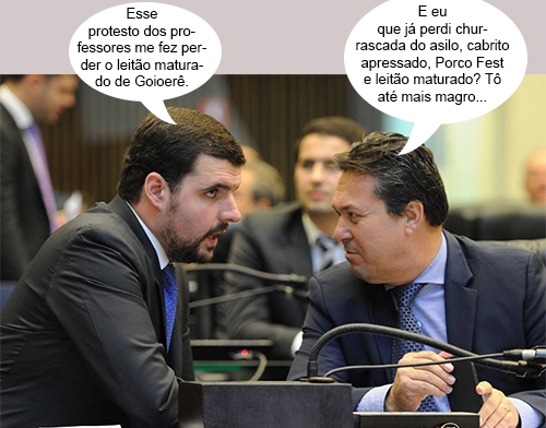 O clic é desta terça-feira, em Curitiba, durante sessão da Assembleia Legislativa. Os deputados Pedro Lupion e Márcio Nunes colocaram a conversa em dia. O primeiro é o parlamentar do prefeito Beto Costa (Goioerê) e o segundo é da região, mas nenhum foi, domingo, à Festa do Leitão Maturado, o prato típico goioerense. Ah, deve ser regime...