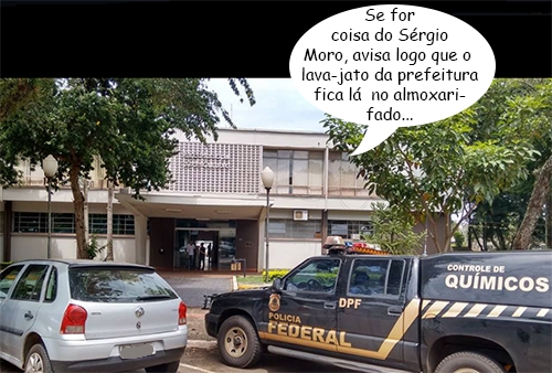 O clic é da manhã desta quinta-feira, quando uma viatura da Polícia Federal, com placa de Foz do Iguaçu, parou bem em frente à prefeitura de Campo Mourão. Mas bem em frente mesmo. A viatura era identificada como sendo do “Controle de químicos”. Ai-aiai-aiai! Não tinha outro lugar pra estacionar, não?...