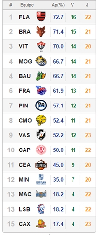 Os três últimos colocados não têm mais como alcançar as 11 vitórias de Campo Mourão (chegam no máximo a 10).