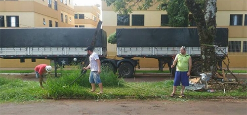 “Unindo forças para limpar via pública!” Foi assim que Eufrazio Júnior definiu a ação desta quarta-feira, quando ele e o vizinho Carlos André Opoloski foram limpar por conta próprio o canteiro central da av. Comendador Norberto Marcondes, em frente ao Projeto Morada. Eles tiraram o mato, cortaram a grama e recolheram o lixo.