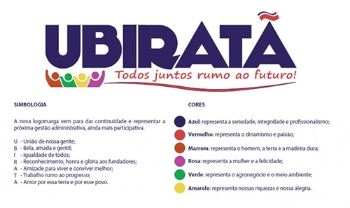 O prefeito é o mesmo (Baco Duarte), mas a prefeitura de Ubiratã está de logomarca nova, que representa a continuidade da gestão administrativa, que promte ser “ainda mais participativa”. A apresentação da nova marca traz a justificativa para cada cor utilizada e até um acróstico com o nome do município. “Cada letra que forma a palavra Ubiratã existe uma simbologia”, explica o material.