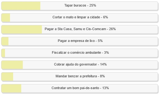“Pagar Santa Casa, Samu e Cis-Comcam” ficou em primeiro lugar, com 26% dos votos.