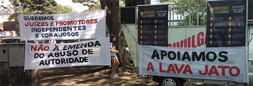 Manifestação neste domingo, em Campo Mourão, protestou contra a emenda que prevê punição a juízes e promotores.