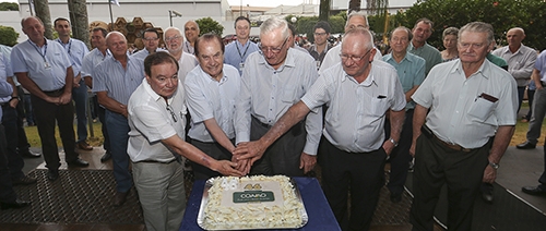 O corte de um bolo e o “parabéns pra você” marcaram nesta segunda-feira os 46 anos de fundação da Coamo. Foi em 28 de novembro de 1970 que 79 agricultores, liderados pelo agrônomo José Aroldo Gallasini, iniciaram aquela que se tornou a maior cooperativa agrícola da América Latina. Hoje a Coamo mantém 119 unidades em 68 municípos do Paraná, Santa Catarina e Mato Grosso do Sul.