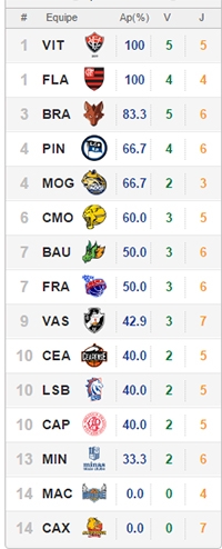 O time baiano lidera a competição ao lado do Flamengo, com 100% de aproveitamento.