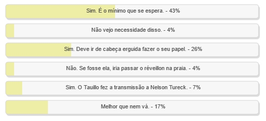 As três alternativas favoráveis a ida dela somaram 74% dos votos.