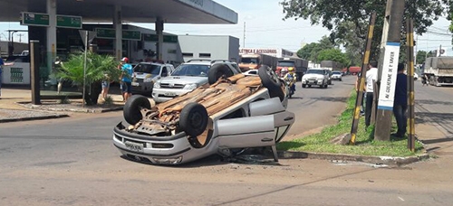 Até que fazia tempo que não aparecia um acidente com carro capotado no perímetro urbano de Campo Mourão. Esse aí foi nesta terça-feira, por volta das 14h30, na av. Guilherme de Paula Xavier, cruzamento com a av. Miguel Luiz Pereira (leia-se trevo de acesso ao Lar Paraná).