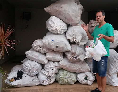 Lembra do professor José Alves da Cruz, que após contrair dengue pela segunda vez criou a “caminhada ecológica” e em três meses juntou 10 sacos de garrafa pet, copos plástico e latinhas vazias? Isso foi em julho. De lá pra cá ele continuou levando sacolas plásticas e recolhendo lixo reciclável durante suas caminhadas diárias. Resultado? Nesses cinco meses foram recolhidos mais 20 sacos de materiais.