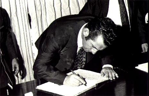 31 de janeiro de 1973. O advogado Renato Fernandes Silva assina o livro de transmissão de cargos no gabinete da prefeitura. A posse aconteceu no Cine Plaza, onde hoje funciona a igreja Universal.
