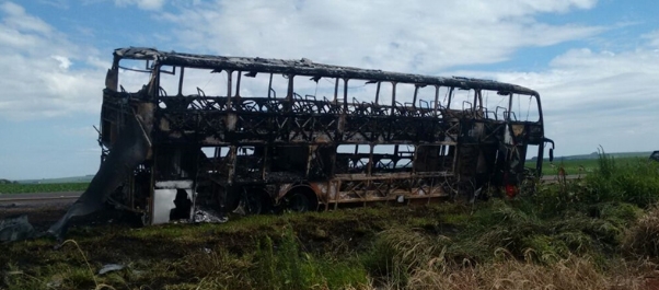 Ônibus da empresa Pluma foi destruído pelo fogo na madrugada deste sábado, na BR-369, perto de Juranda. O fogo teria começado por volta da 4h, quando houve pane mecânica após o estouro de um pneu. Cerca de 40 passageiros estavam no ônibus e ninguém se feriu. O coletivo tinha saído de Assunção, no Paraguai.