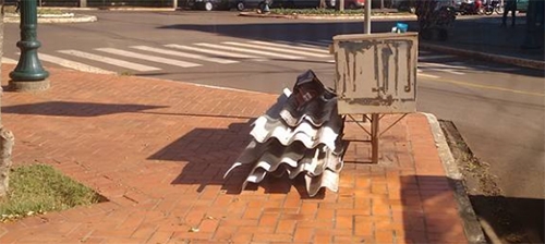 Tem galhada? Tem. Tem guarda-chuva? Tem. Tem móvel quebrado? Tem. Tem de tudo pelos canteiros centrais de Campo Mourão. A foto é da av. Comendador Norberto Marcondes, entre as ruas São José e Interventor Manoel Ribas.
