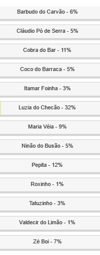 Pepita, de Campo Mourão, ficou em segundo, com 12%, e Cobra do Bar, de Luiziana, em terceiro, com 11%.