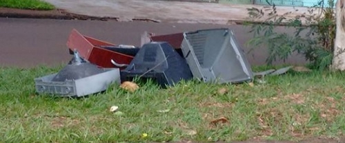 Campo Mourão encerrou o ano com muito mato pelos canteiros centrais das avenidas. Onde não tem mato, tem morador que deu um jeitinho de estragar tudo. Nesse trecho da av. Jorge Walter pedaços de televisões foram deixados no canteiro.
