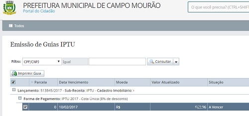 Sobrou dinheiro das compras de fim de ano e está doidinho para pagar o IPTU 2017? Calma! Seus problemas acabaram. Já está disponível no portal da prefeitura o boleto do impostinho. Quem pagar à vista até até 10 de fevereiro ganha 8% de desconto. Também dá para imprimir o boleto em 10 parcelas. Se o contribuinte quiser pagar em menos parcelas deve procurar a prefeitura. O IPTU está 7,39% mais caro que ano passado, fruto da correçãozinha básica pelo INPC.