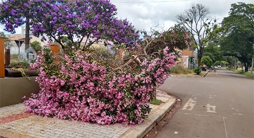 A ventania de segunda-feira à noite nem foi tanta assim, mas acabou sendo suficiente para derrubar uma bela árvore florida da esquina da av. Goioerê com a rua Interventor Manoel Ribas. Justo uma árvore com flores coloridas. Ah, quando a fase não é boa, nem São Pedro colabora...