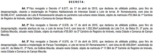 Uma para abertura de rua, outro para construção de casas e o outro para criação do Parque Tecnológico.