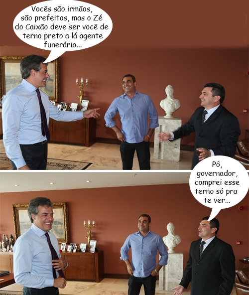 Os cliques são desta quarta-feira, quando o governador Beto Richa recebeu os irmãos Edmar Santos e Zé do Caixão, ambos eleitos prefeitos. O primeiro de Santa Cecília do Pavão e o segundo de Boa Esperança. Em tempo: Zé do Caixão é do de camisa azul clara, sem terno.