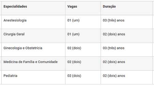 São oito vagas em cinco especialidades.