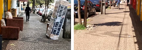 Quadra da av. Capitão Índio Bandeira, no centrão de Campo Mourão. Até semana passada tinha de tudo na calçada. Sofá, colchão, fogão, máquina de lavar roupa, centrífugo, cadeira e até fogão a lenha. Nesta segunda-feira a calçada surgiu sem nada. Segundo a Secretaria de Fiscalização por enquanto os fiscais estão recomendados a orienarem os comerciantes. “Os efeitos serão positivos e todos são iguais perante a lei”, frisou o secretário Cristiano Callixo.
